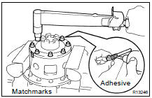 (b) Coat the threads of the bolts and pinion shaft with adhesive.