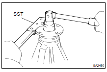 (d) Using SST to hold the flange and adjust the drive pinion preload by tightening the companion flange nut.